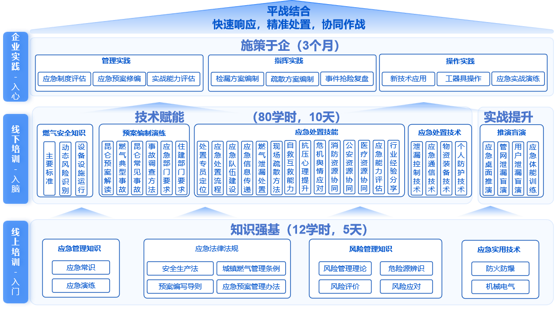 培训历时数月,涵盖线上培训5天、线下集中面授11天及成果实践60天,参训学员包括该大型燃气集团来自全国各地的核心应急处置骨干力量。